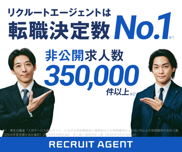 リクルートエージェントは、求人数80万件以上保有する転職サービスです。国内No.1の転職支援実績を活かし、過去45万人以上のデータ・ノウハウに基づいたキャリアアドバイザーが多数在籍!さらに、独自の職務経歴書を簡単に作れるサービスや、転職セミナー、イベント、フェスがあり転職を優位に進められます。転職活動を始める方はまず初めに登録しておくべきサービスです。